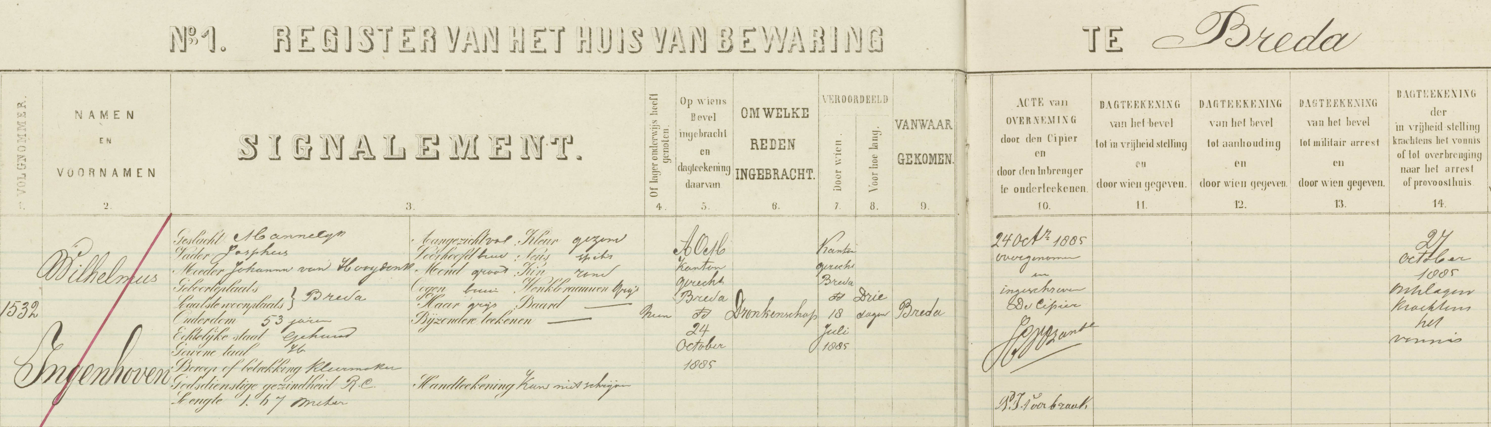 Hij verbleef oa vanaf 24 oktober 1885 3 dagen in de gevangenis voor "dronkenschap".